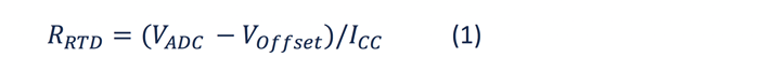 為了進行校準,我們將需要讀取兩個電阻并計算恒流源值和組合誤差,我們將其稱為V Offset。校準后的I ccV Offset值用于轉換RTD溫度讀數。