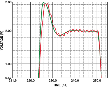 7中的振蕩顯示了2.54厘米的線長(zhǎng)對(duì)高速運(yùn)放非垂直輸入的影響。等效雜散電感為29nh(納米能源),足以引起持續(xù)的低電平振蕩,并在整個(gè)瞬態(tài)響應(yīng)期間持續(xù)存在。圖中還顯示了如何使用地平面減輕雜散電感的影響。