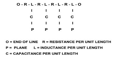 可以看出, 沿著傳輸線的長度分布著電容,電阻和電感。如前幾篇文章所述,這些元件被稱為寄生元件,它們以每單位長度的電感與每單位長度的電容器之比來建立傳輸線的行為。此外,它們確定線路的阻抗,如公式1所示。