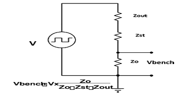 分壓器由驅(qū)動(dòng)器輸出阻抗和上部的串聯(lián)端接以及下部的傳輸線阻抗組成。正確選擇串聯(lián)終端后,Zout和Zst的組合將與Zo相同。在此示例中,兩者均為50歐姆。