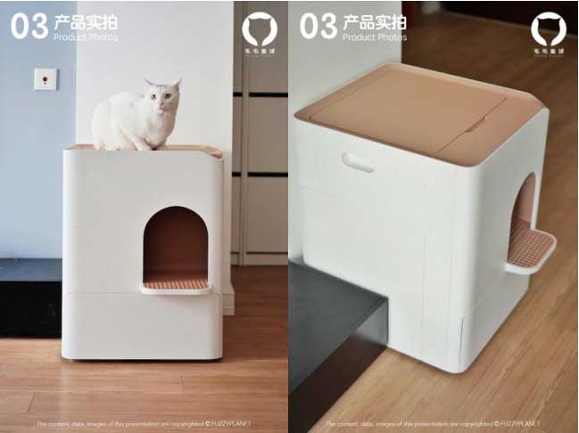 貓砂小屋內有一個“貓砂盆” (可打開設備后面板取出),貓砂盆下有稱重傳感器,小屋后部有鏟屎機構,頂部有自動補砂漏斗。貓咪進入貓砂小屋需經(jīng)過一個“小走廊”進入貓砂盆。小走廊下方是收納排泄物的“集便盒”。上海毛毛星球智能科技有限公司
